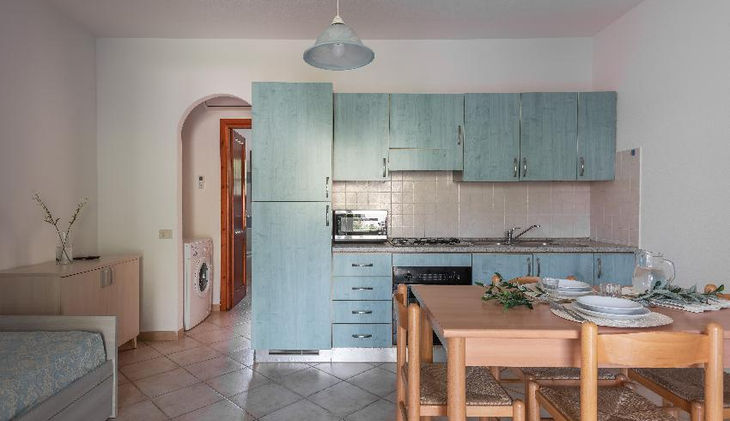 (33 mq): ubicati al piano terra con patio o al primo piano con terrazzo, sono composti da soggiorno con angolo cottura e divano letto doppio, una camera matrimoniale, un bagno con doccia.
