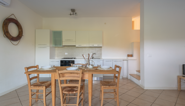 Trilo 6: (65/ 70 m2): soggiorno con angolo cottura e divano letto doppio, una camera matrimoniale, una camera con 2 letti singoli o letti a castello, un bagno con doccia. Possibilità di aggiungere una culla con supplemento.