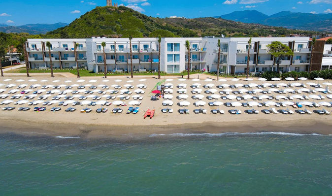 Direttamente sul mare, spiaggia di sabbia fine, attrezzata. Servizio spiaggia incluso nella Club Card (1 ombrellone + 2 lettini a camera) a partire dalla 2° fila.