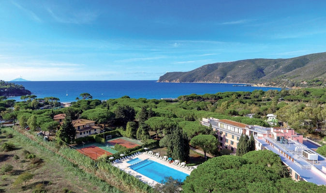 COME ARRIVARE: In aereo: Marina di Campo a 9 km dall’Hotel, aeroporto di Pisa a 100 km. In auto e traghetto: a Piombino traghetto per Portoferraio. DESCRIZIONE E SERVIZI: Uappala Hotel Lacona di categoria quattro stelle è situato direttamente sul mare in una splendida posizione dove la tranquillità fa da padrona. Sorge su un’area verde circondato da una meravigliosa pineta.
