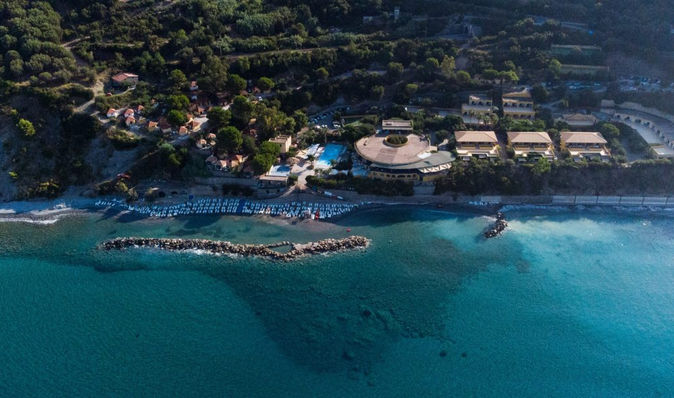 Direttamente sul mare, arenile di sabbia, ghiaia e ciottoli, attrezzato; un tratto di spiaggia è riservato agli ospiti con cani al seguito. Servizio spiaggia incluso nella Tessera Club a partire dalla 2° fila (1 ombrellone + 2 lettini a sistemazione, non assegnati).